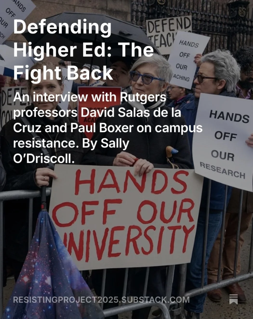 An interview with Rutgers professors David Salas de la Cruz and Paul Boxer on campus resistance. By Sally O’Driscoll.